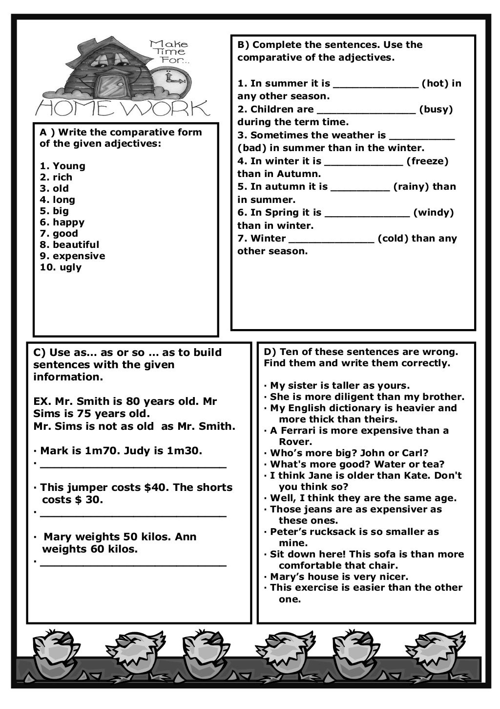 Are you asking for 'comparative adjectives homework'? You can find all the information on this website.